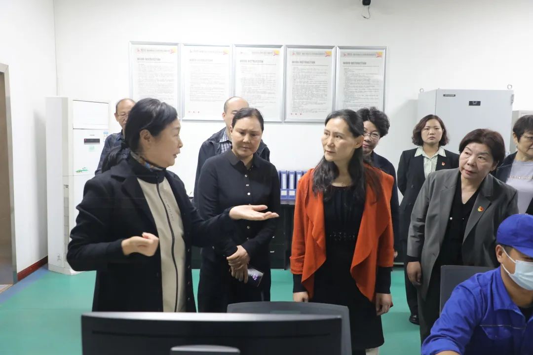 闫董事长陪同朱丽珍主席一行观看企业宣传片,并通过参观走廊参观三、四、五号生产线,向各位领导和嘉宾系统介绍银金达发展历程、生产设备、创新成果等,朱主席和各位女企业家对银金达优美的厂区环境、现代化的生产设备、优秀的企业文化、卓越的创新成果表示热诚赞许。