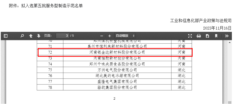 近日,国家工业和信息化部公示了第五批服务型制造示范名单,河南银金达新材料股份有限公司获评国家级服务型制造示范企业。新材料公司于2022年入选“河南省服务型制造示范企业”,此次获评是对银金达“产品+服务+技术”综合解决方案的再次肯定。