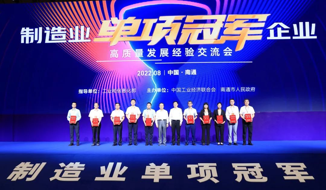 8月13日,由工信部指导,中国工业经济联合会和南通市人民政府主办的全国制造业单项冠军企业高质量发展经验交流会在江苏南通举行。