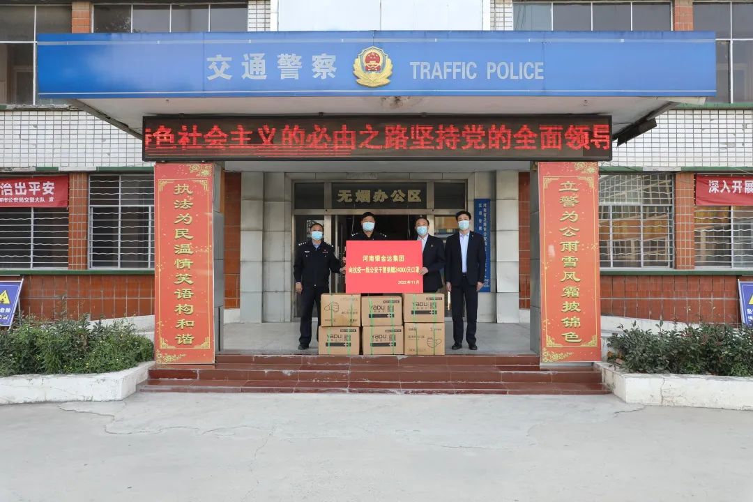 在当前疫情严峻复杂的形势下,公安干警不惧风险英勇战斗在疫防一线,为守护一方平安和抗击疫情作出了重要贡献。银金达集团党委书记、董事长闫银凤为助力公安干警抗击疫情,委托集团党委副书记、工会主席杨凤瑞和彩印公司副总经理刘广斌到卫辉市公安局、卫辉市交警大队慰问,并捐献防疫口罩2.4万只,表达银金达干部职工的热诚问候。