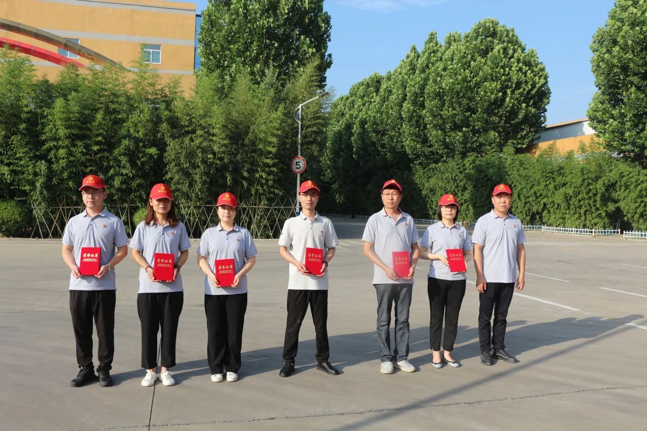 在焦海涛同志的带领下,全体人员高举右拳,高声朗读员工誓词和行为准则,伴随着《没有共产党就没有新中国》激昂奋进的歌声,全体人员列队出发。
