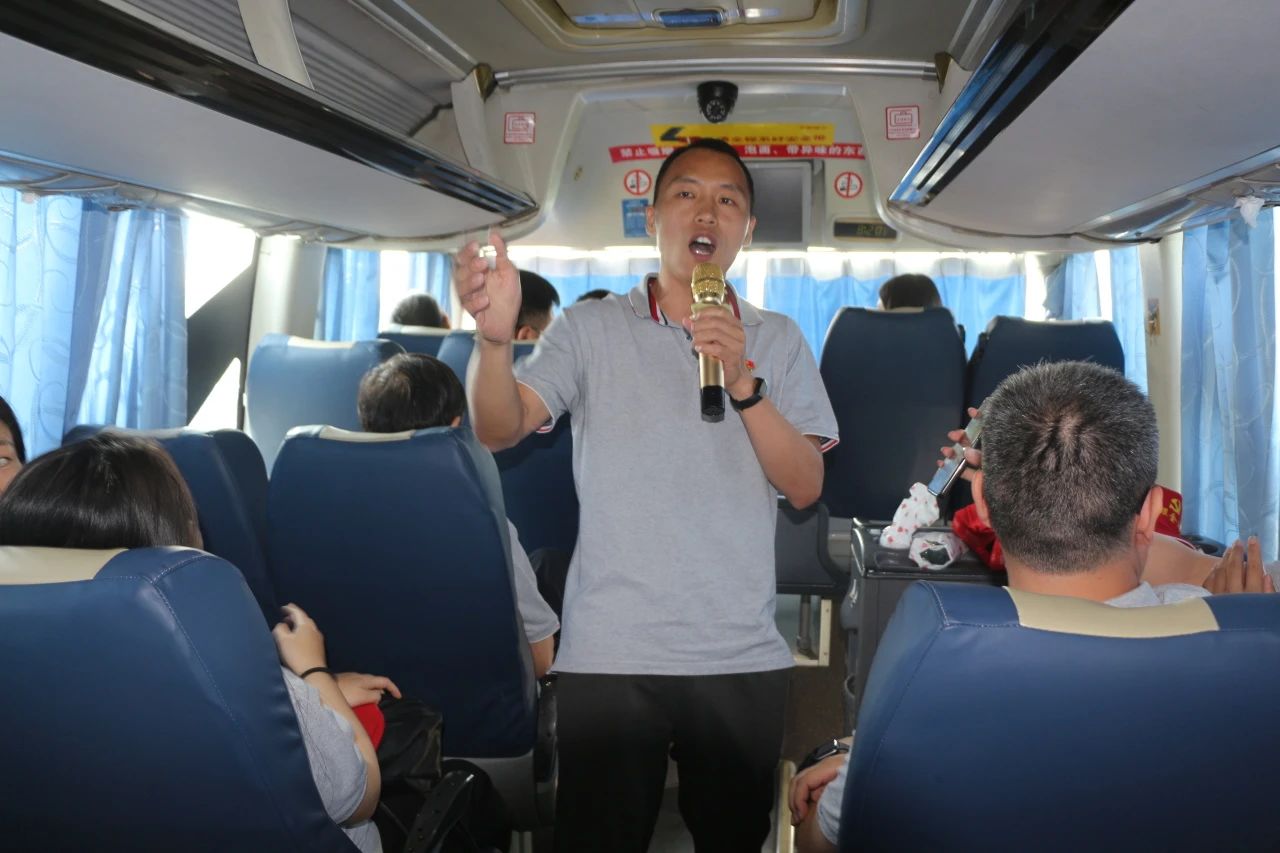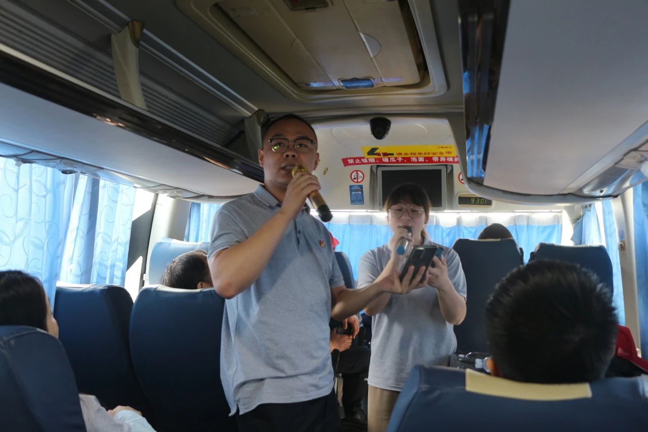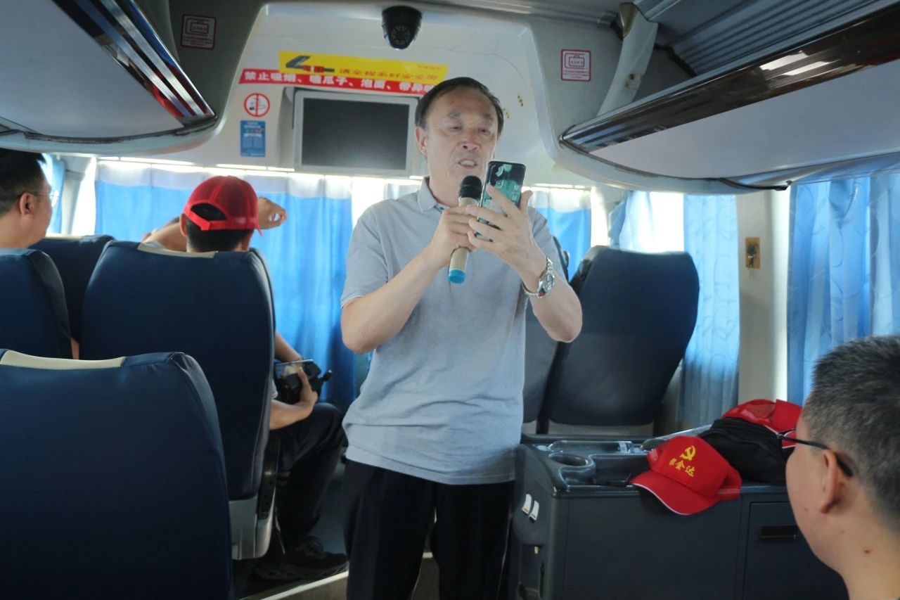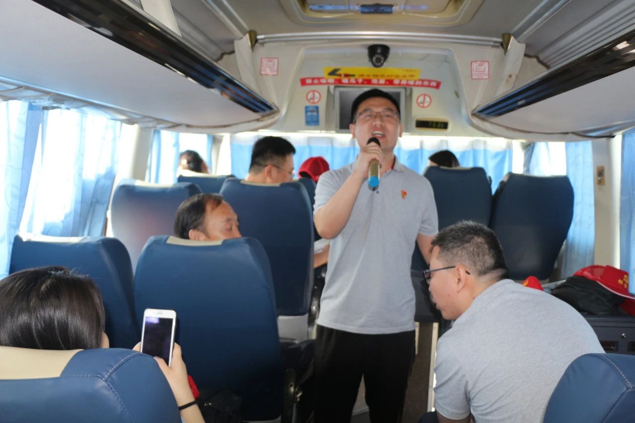 在行驶途中的红歌赛环节,领导带头演唱,车厢内气氛热列,《把一切献给党》《太行颂》《没有共产党就没有新中国》《一支钢枪》《珊瑚颂》《强军战歌》等一首首红色经典曲目让人激情满怀。