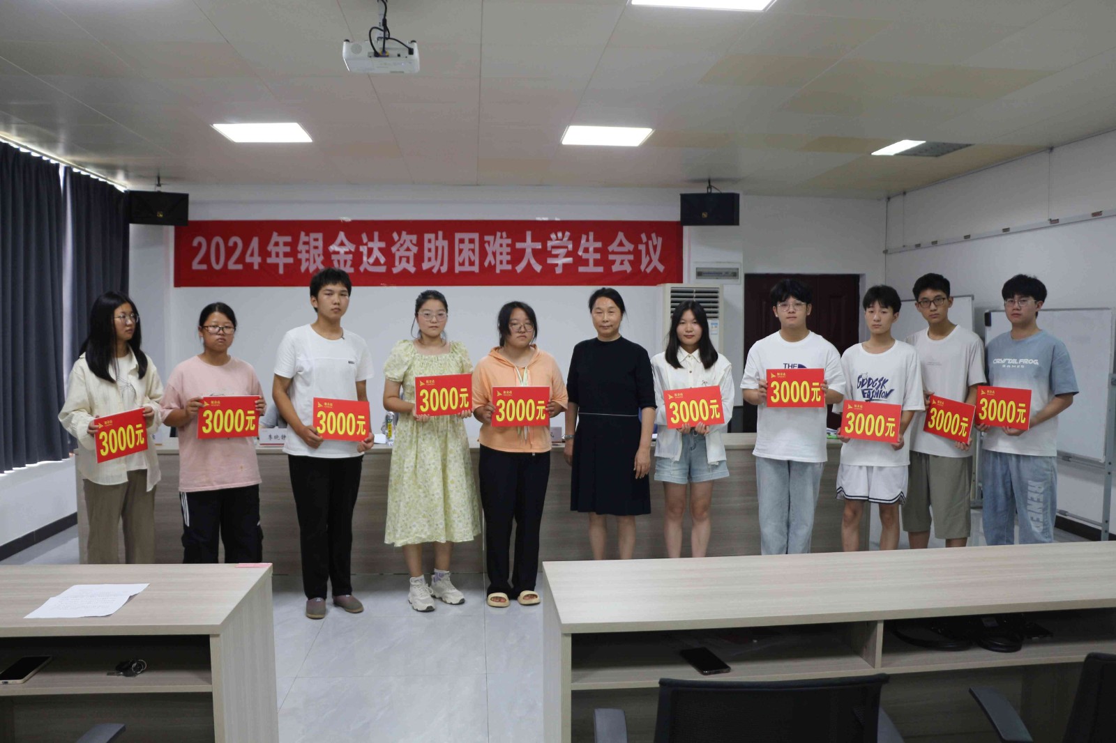 8月26日,2024年度河南银金达控股集团资助困难大学生会议在新材料公司六楼会议室举行。卫辉市政协原副主席、慈善协会副会长王连富、共青团卫辉市委书记尚文宁、河南银金达集团党委书记、董事长闫银凤等出席会议,2024年受资助的68名困难大学生和部分学生家长代表参加会议,会议由银金达集团团委书记李晓静主持。