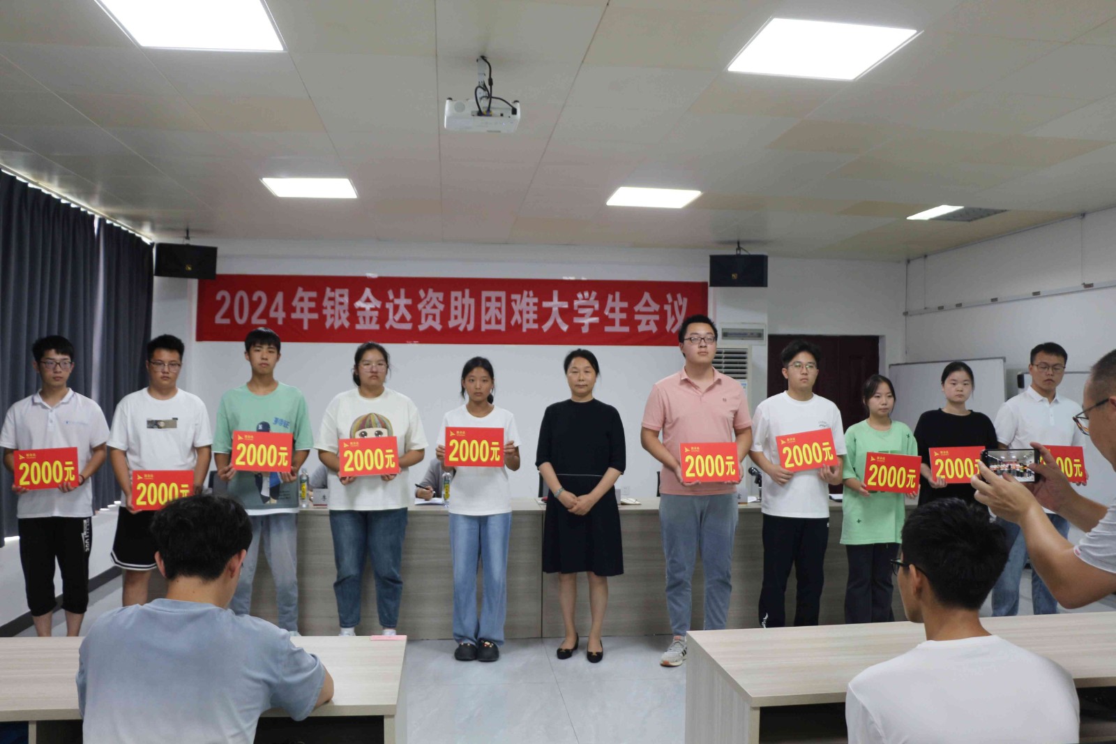 银金达集团党委书记、董事长闫银凤亲自为各位困难大学生发放资助金。