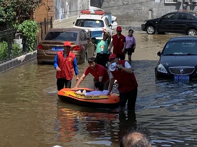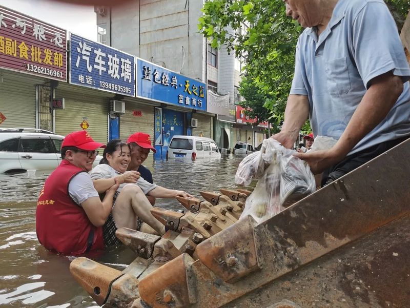 创新中心(新乡市高新区)黄晓谨(创新中心党支部书记、集团副总裁)领队带领创新中心19人自救抢险;